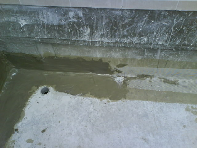 屋頂防水工程 L角鋪設(shè)加強(qiáng)網(wǎng)以往屋頂漏水的部位,大部份都發(fā)生在這個(gè)L 角和漏水管旁邊,因?yàn)長(zhǎng)角的女兒墻和地坪不是一體成型有二次的施工接縫,本工法采用海菜水泥膏,在二次接縫部分加強(qiáng)防水層的抗拉性